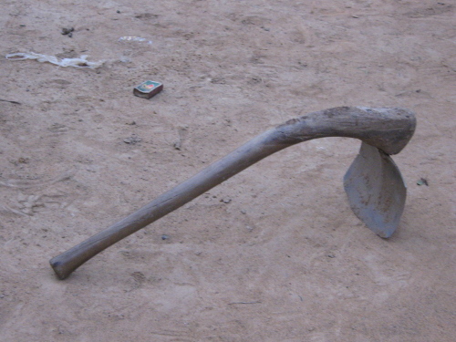 n houe à lame arrondiehoue à lame arrondie (l'embout de la lame sort du manche— la tête a une saillie). dàbadamɔ.