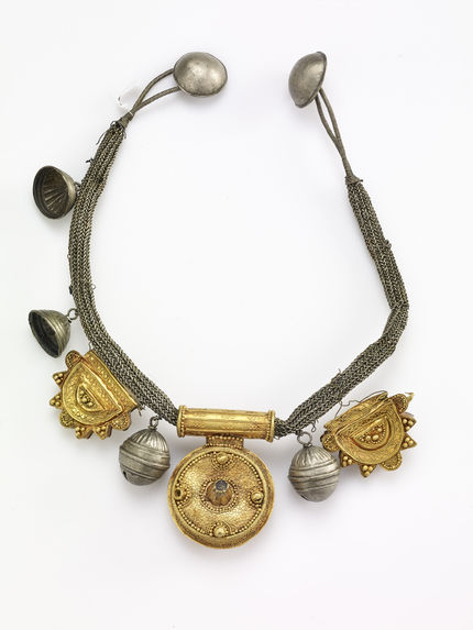n collier odoriférantcollier odoriférant (à odeur poivrée-musquée, fabriqué avec des rhizomes de souchet odorant Cyperus articulatus). (donné aux accouchées et aux bébés).. cypé