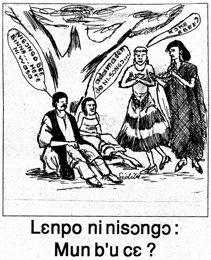 n conscienceconscience, sens de l'honneur séere - k'ú tɛ nìn kɛ́ ? - ù làadiri ka bòn nìn mà - ils ne font pas ça ? - ils sont trop nobles pour cela